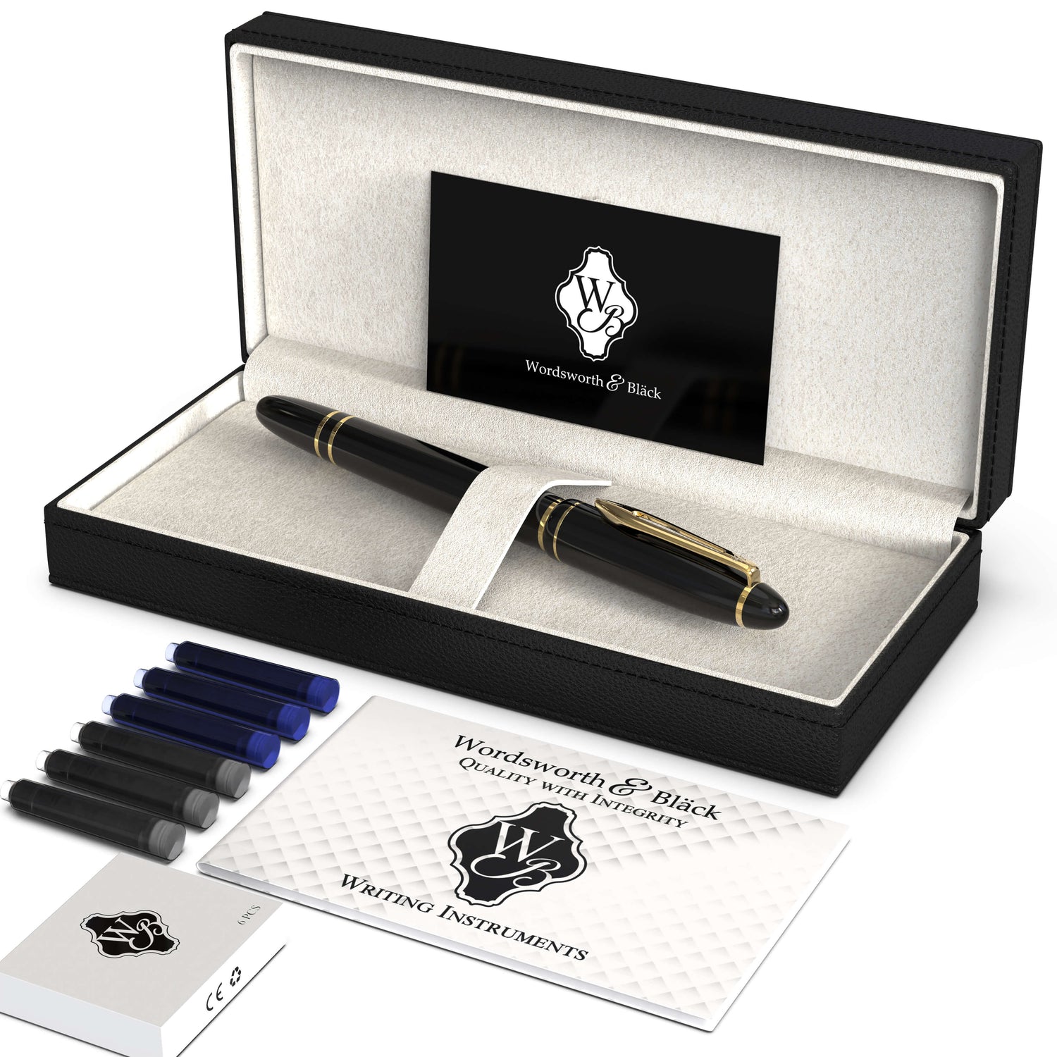 • ✒️DISCOVER THE ALL-INCLUSIVE REFILLABLE FOUNTAIN PEN SET - Includes luxurious Majesti fountain pen, ink converter, 3 x blue ink cartridges, 3 x black ink cartridges, premium leather pen case, and a deluxe gift box - ready to be gifted. Included with every order is a complete instruction booklet for your Wordsworth and Black Pen Set. All the information you'll need to get started using and enjoying your luxurious writing tool will be right at your fingertips!