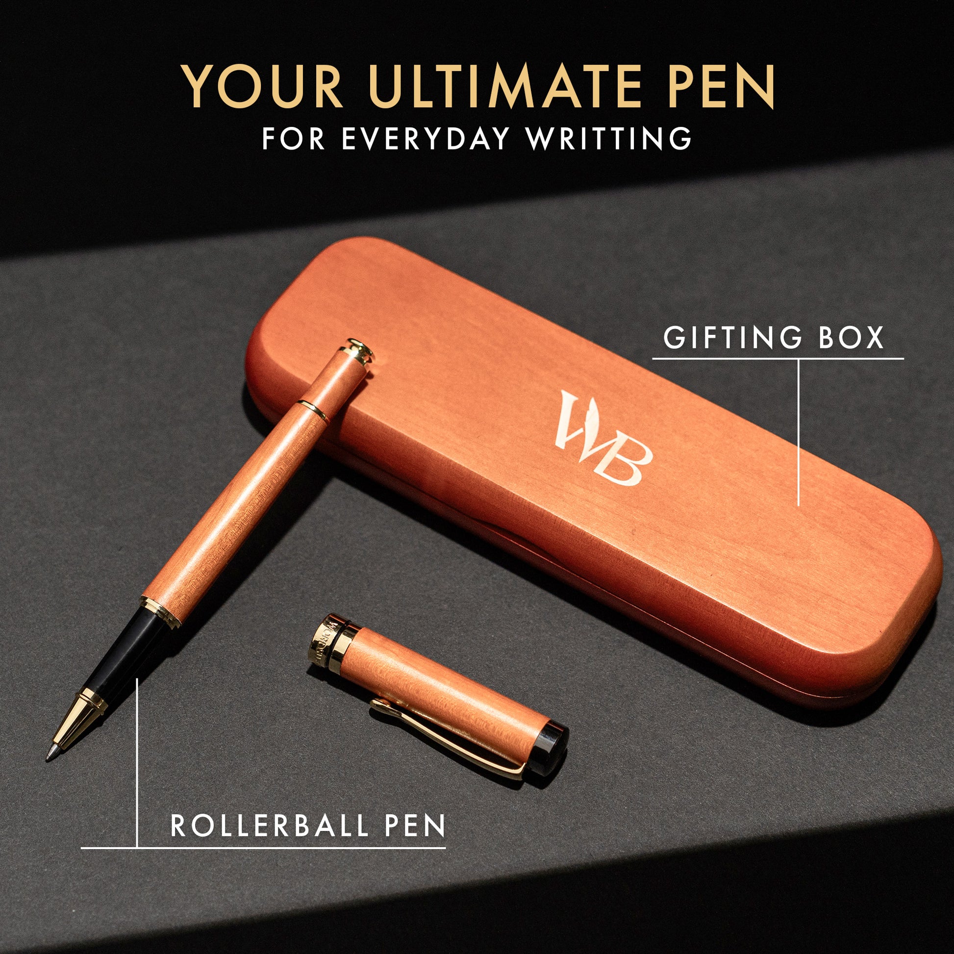 - Balanced Classic Design And Beautifully Crafted - Each rollerball pen is handcrafted, featuring a solid medium point, luxury wood, and distinctive detail for modern elegance in writing. It gives high precision and exceptional writing comfort for every occasion, coupled with a gorgeous design. Wordsworth wooden rollerball pen brings modern sensibility to the art of fine writing.