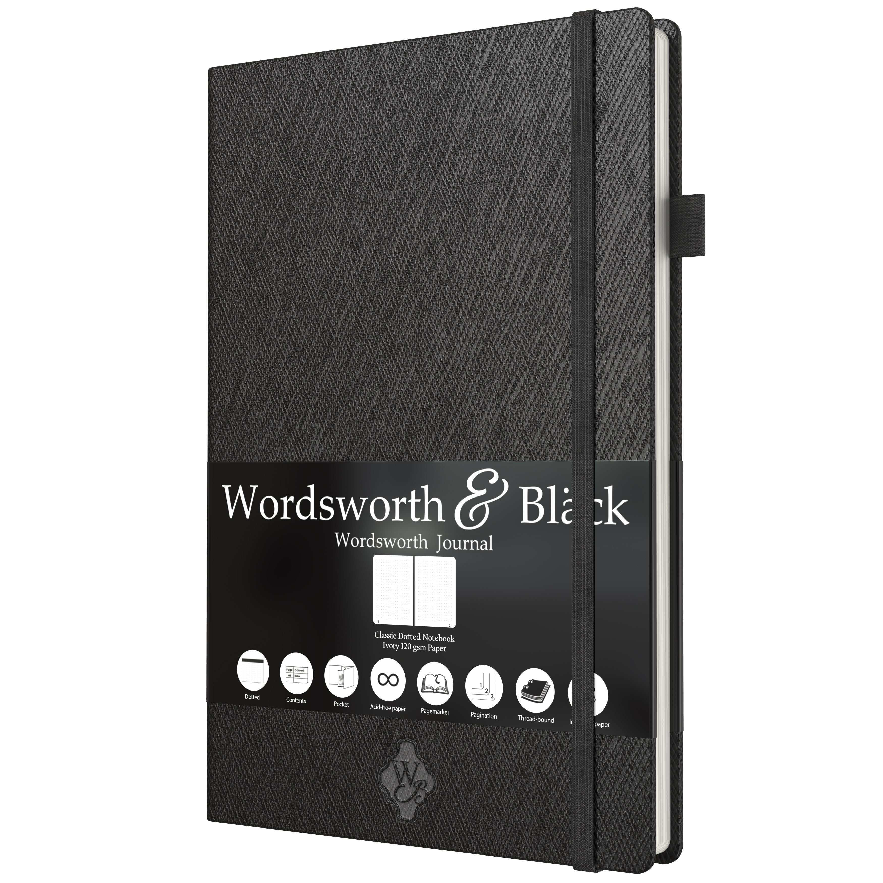 ![Thin Classic Premium Bullet Grid Journal with Pen Loop | A5 5.8 x 8.3 Dotted Hard Cover Notebook | Lightweight, Numbered Pages | Dotted Journal | Leather, Inner Pocket, Ivory 120gsm Paper | Black [hardcover]](http://wordsworthandblack.com/cdn/shop/files/61KtsOuldBS._SL1500.jpg?v=1719920541&width=3840)