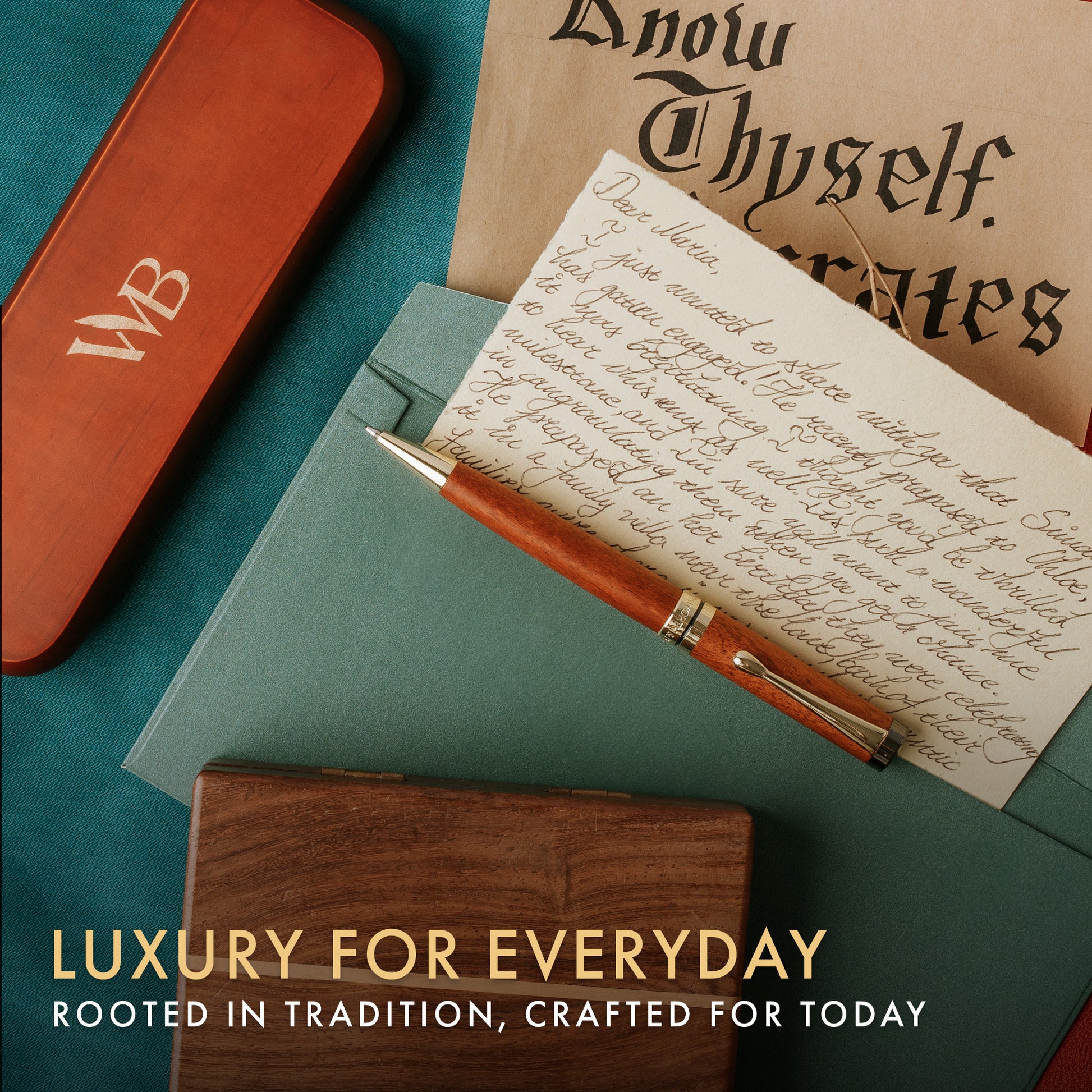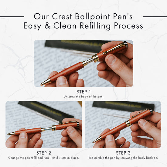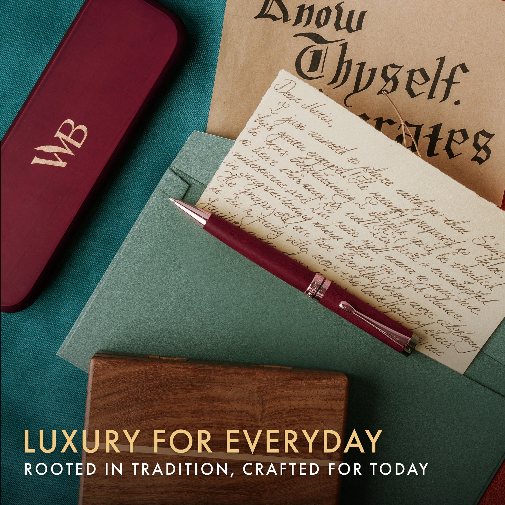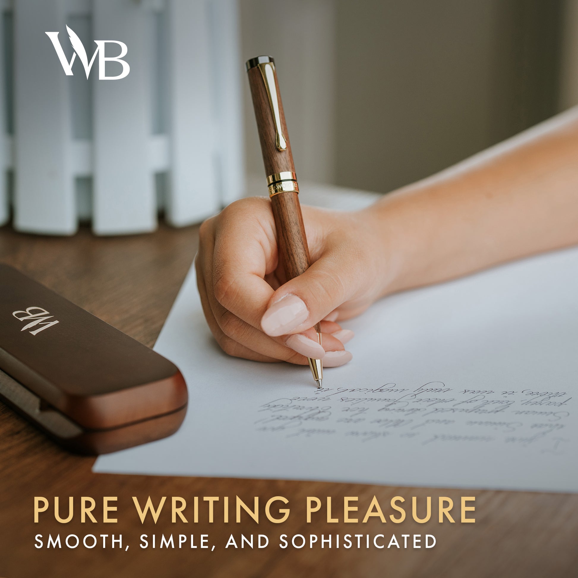 - Balanced Classic Design And Beautifully Crafted - Each ballpoint pen is handcrafted, featuring a solid medium point, luxury wood, and distinctive detail for modern elegance in writing. It gives high precision and exceptional writing comfort for every occasion, coupled with a gorgeous design. Wordsworth wooden ballpoint pen brings modern sensibility to the art of fine writing.