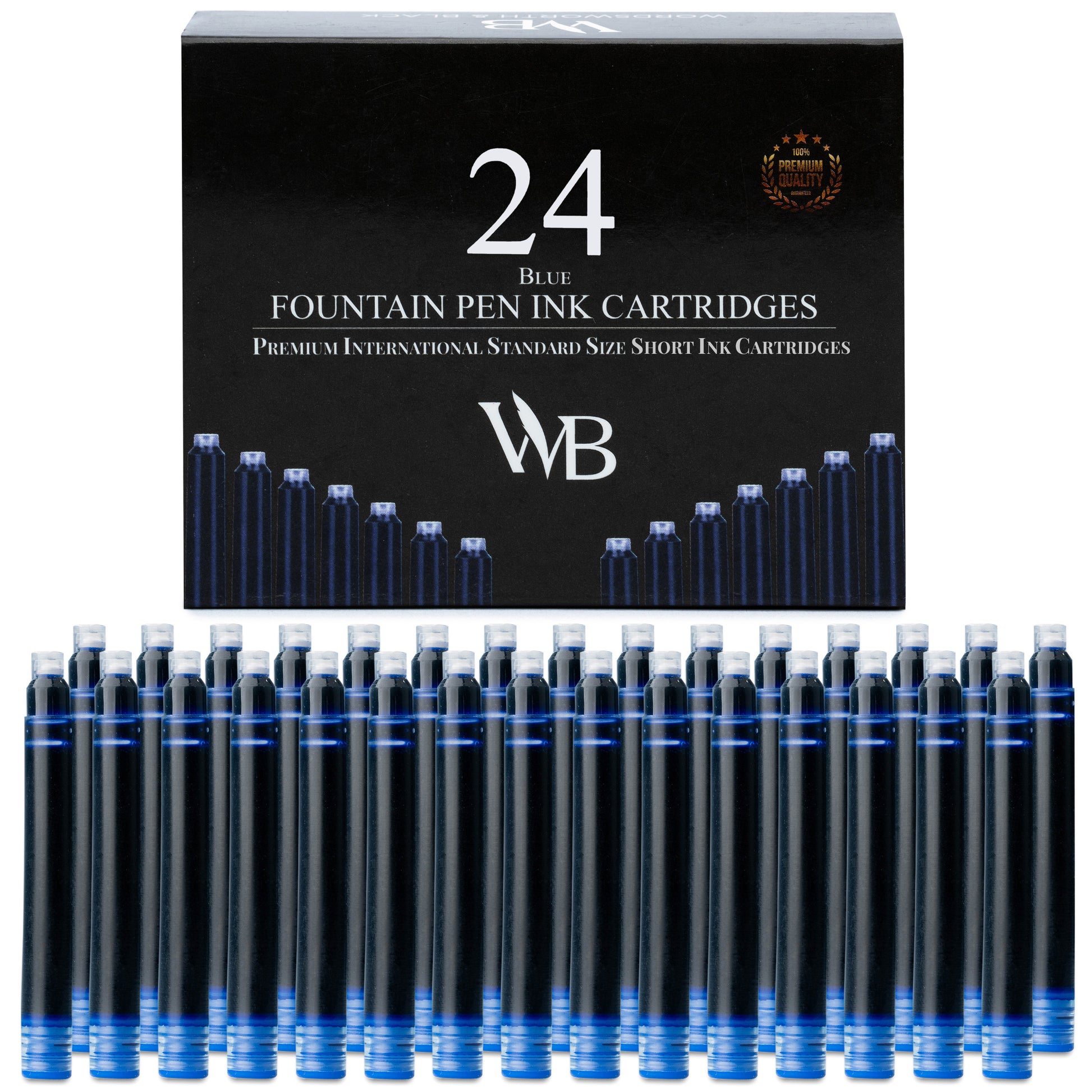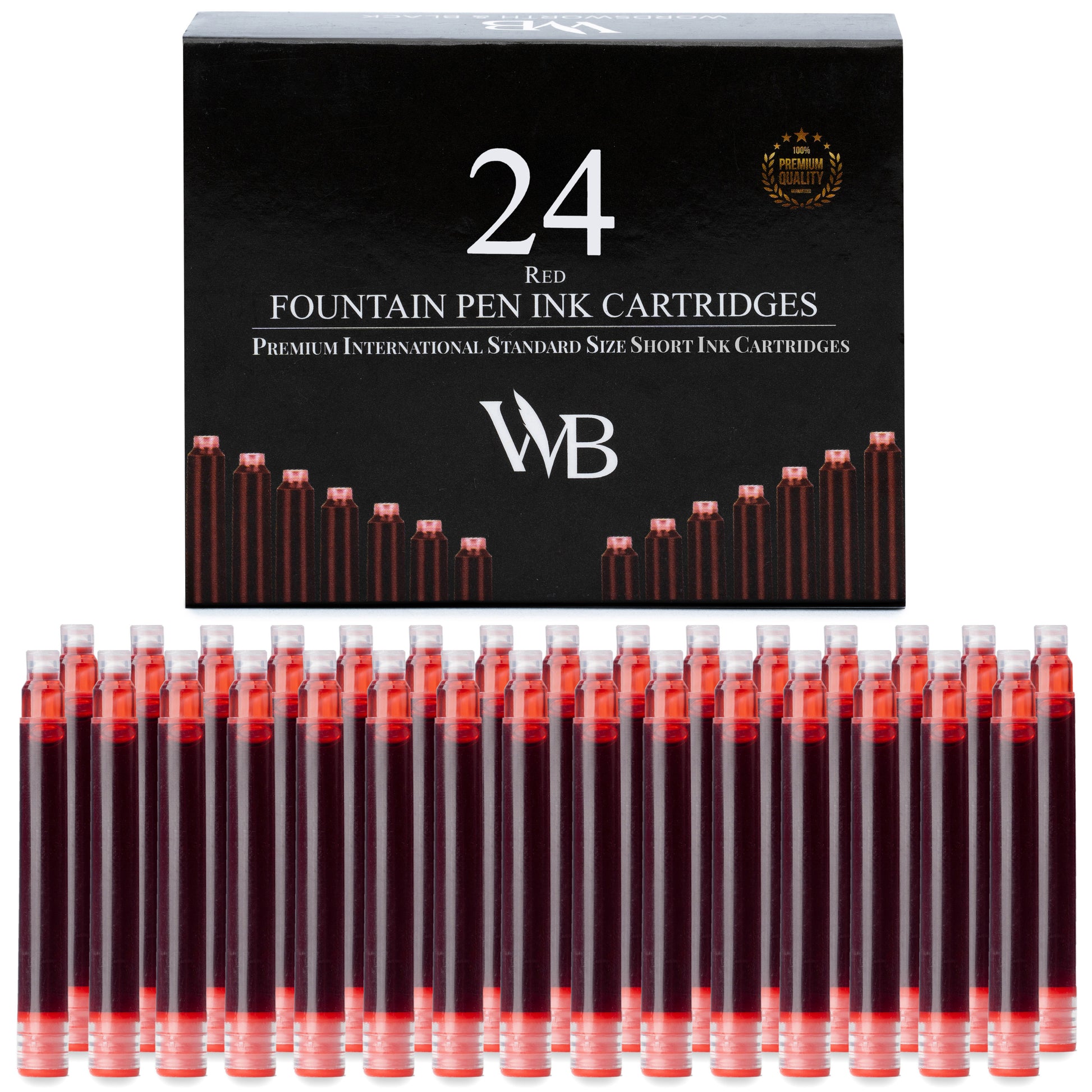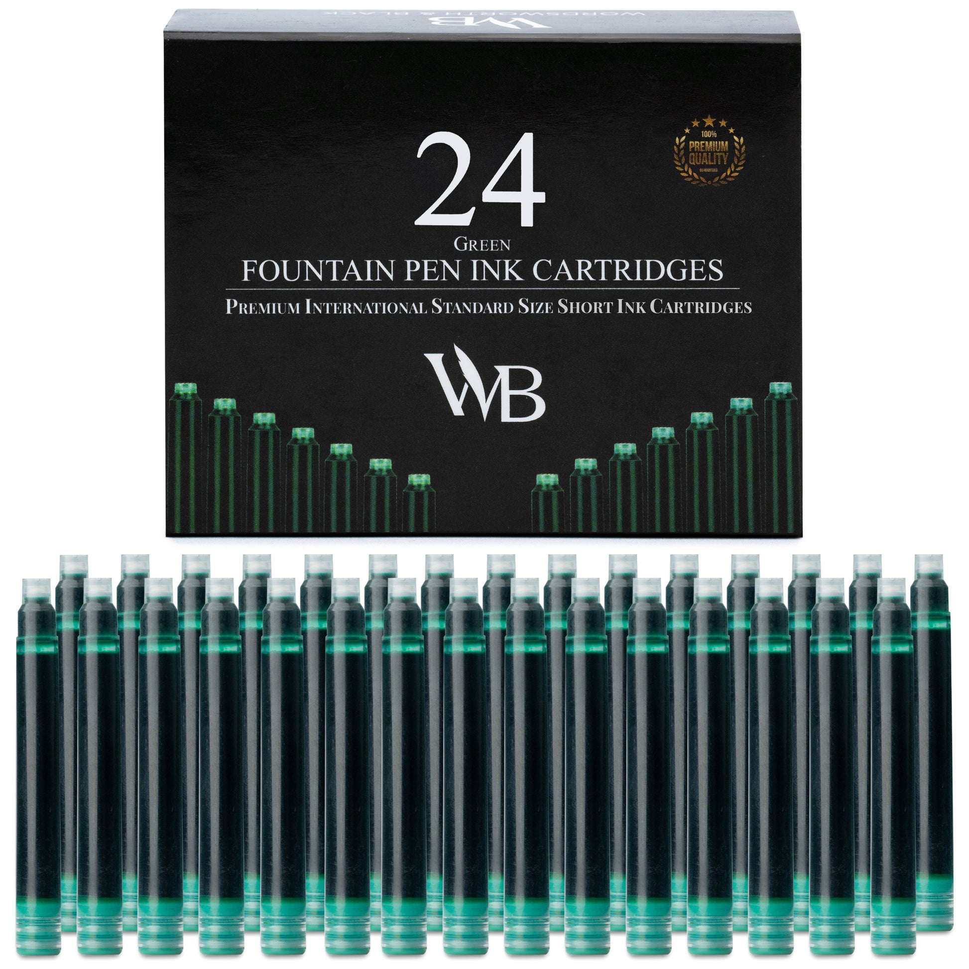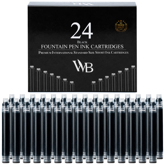 ✅BIG VALUE BLACK PACK: The 24-pack features 24 Black international standard-size Short ink cartridges to fit almost all fountain pens on the market. Box Dimension; 12*4.5*1.6CM.