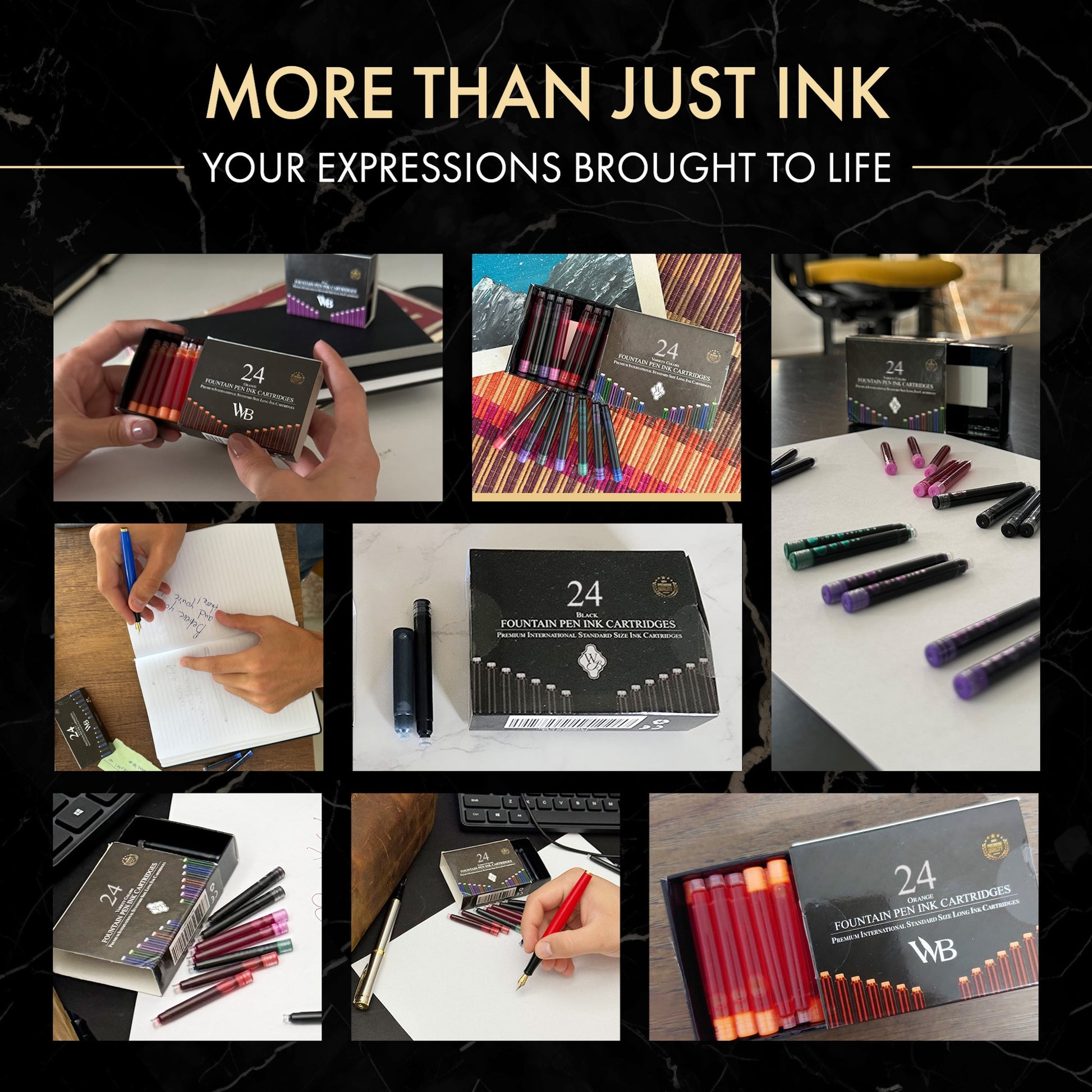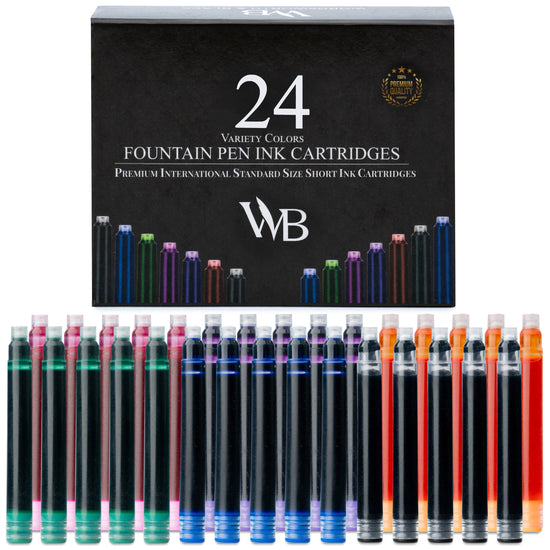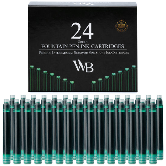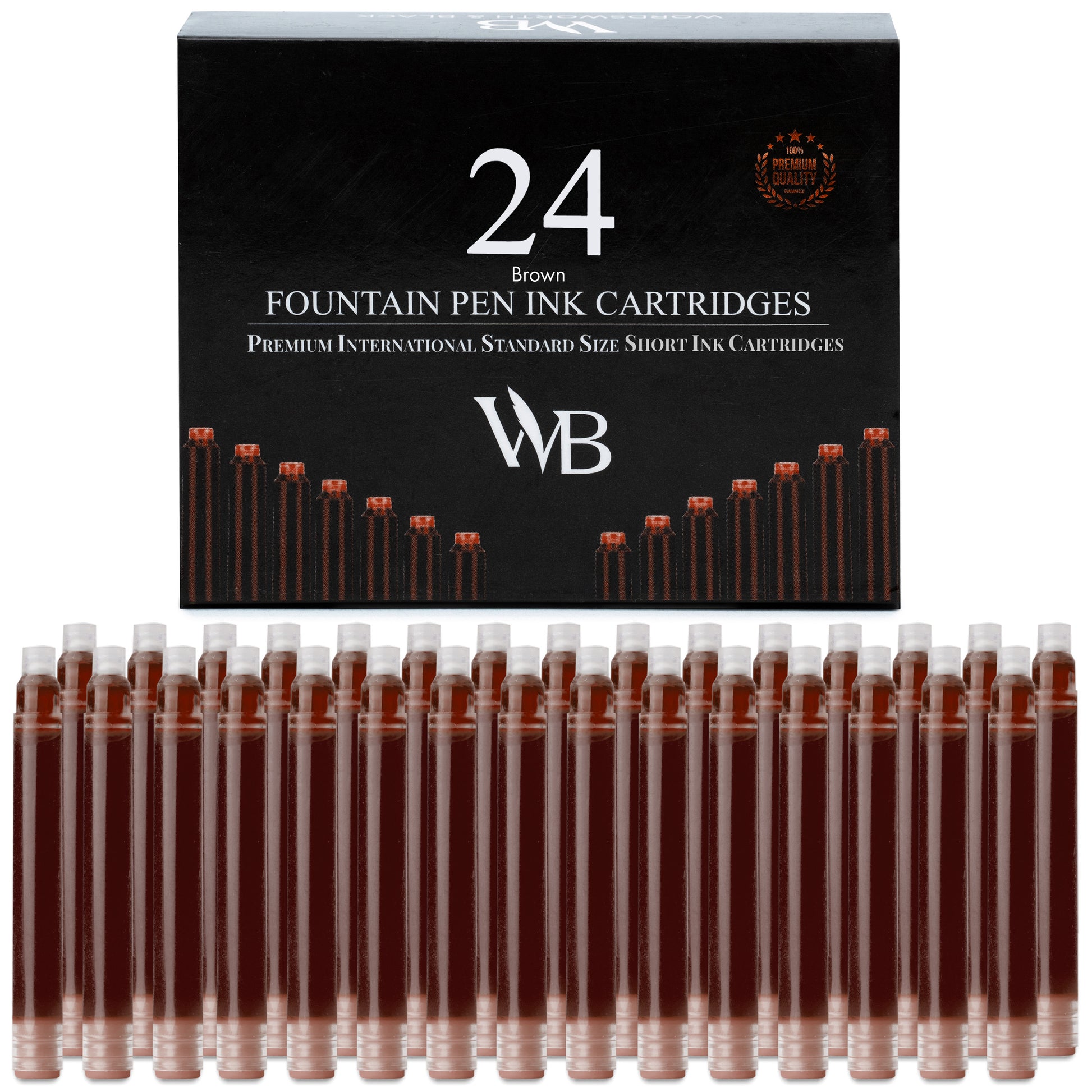 ✅BIG VALUE BLACK PACK: The 24-pack features 24 Black international standard-size Short ink cartridges to fit almost all fountain pens on the market. Box Dimension; 12*4.5*1.6CM.
